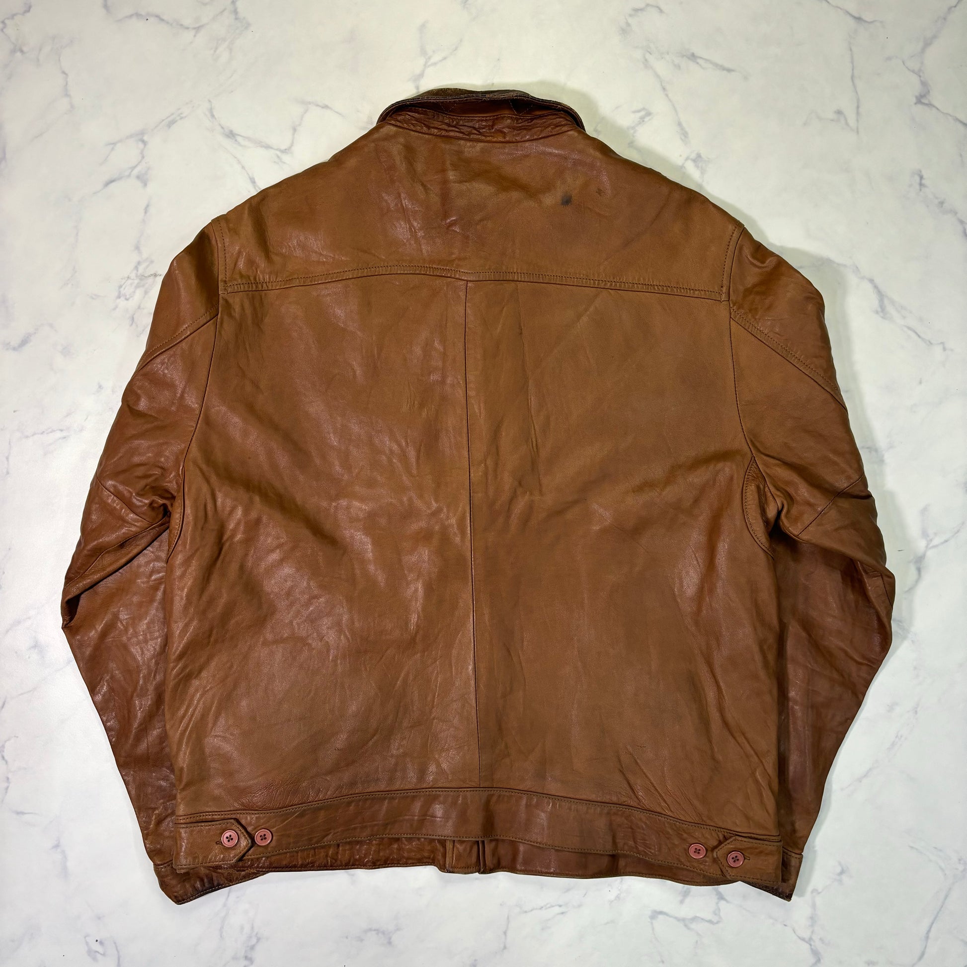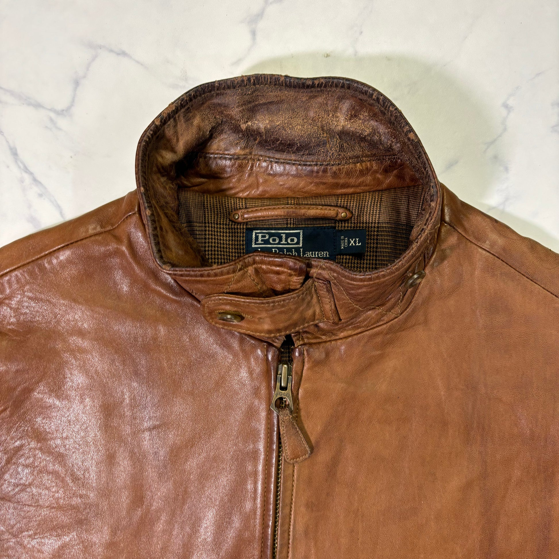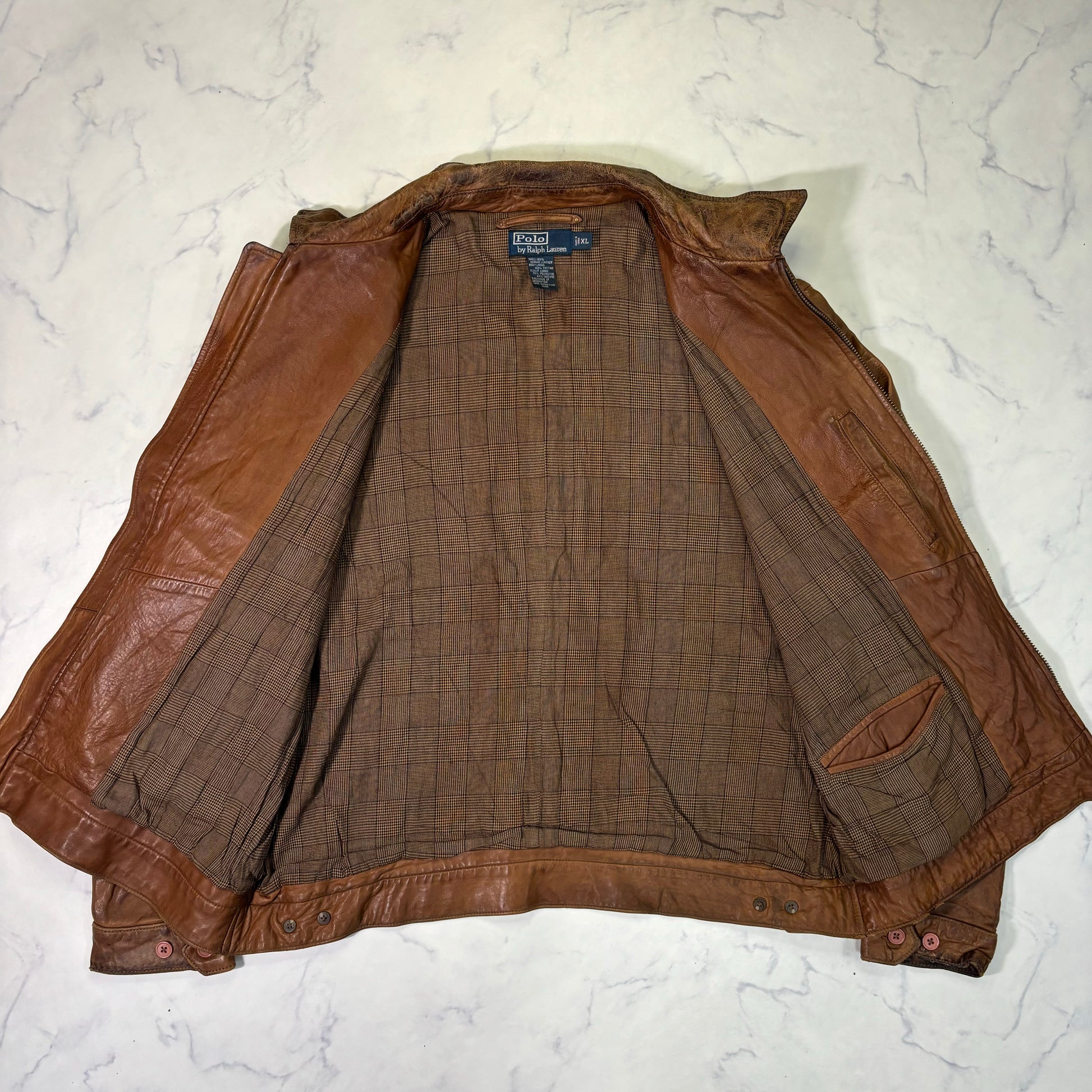 Polo Ralph Lauren Light Brown Leather Jacket 90s XL vintage