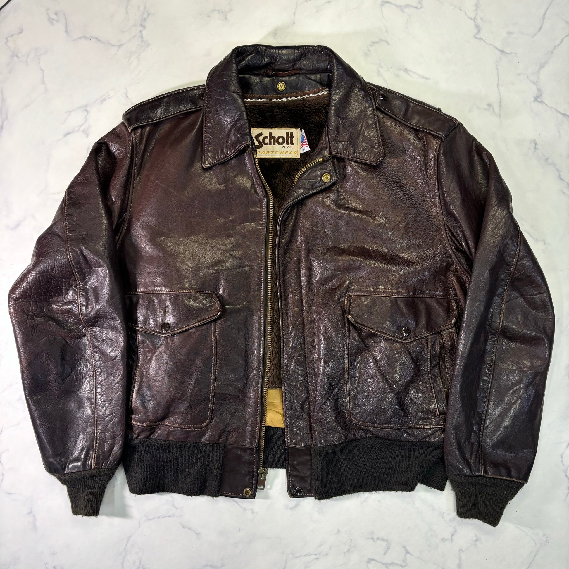 Schott A-2 Leather Flight Jacket Brown 80s Size48