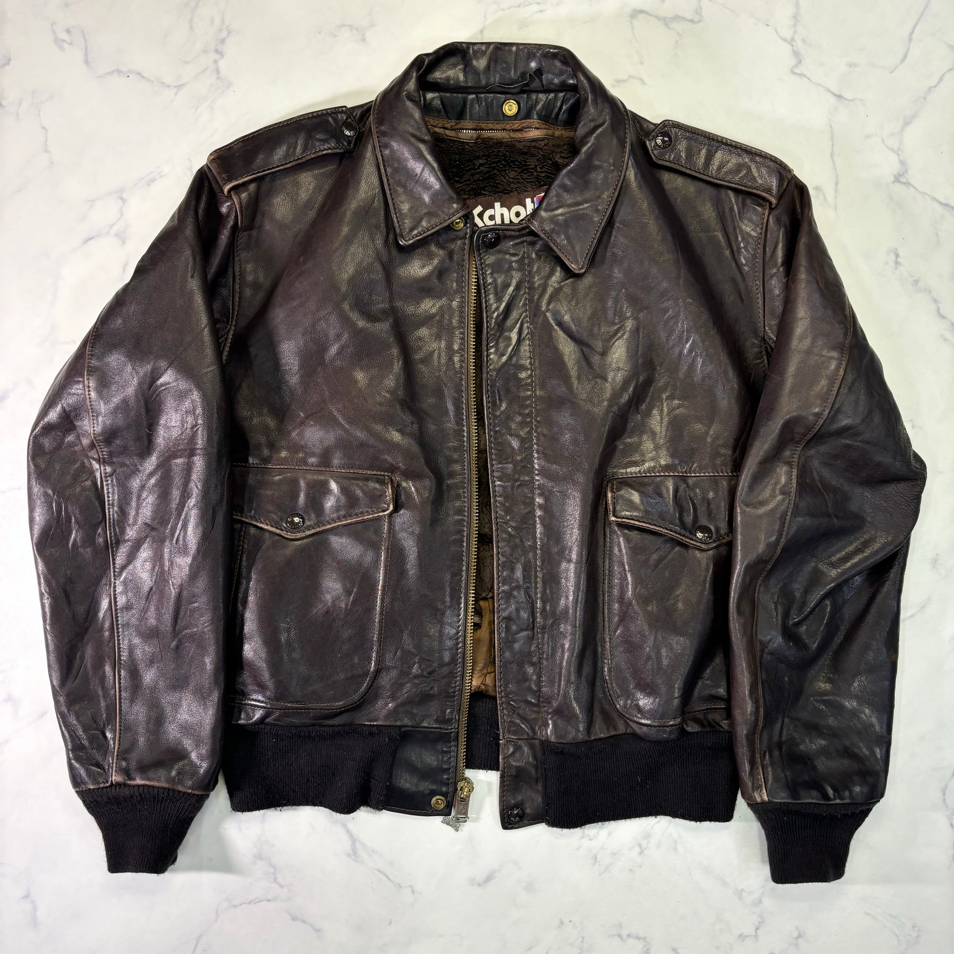 Schott A-2 Leather Flight Jacket Brown 80s Size46